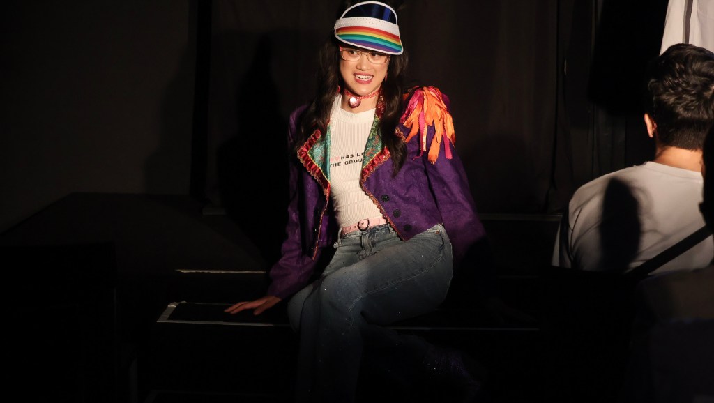 Tiffany acknowledges the environmental impact of AI use and mentions this during the show. (According to Business Insider, fashion production accounts for 10% of global carbon emissions.)